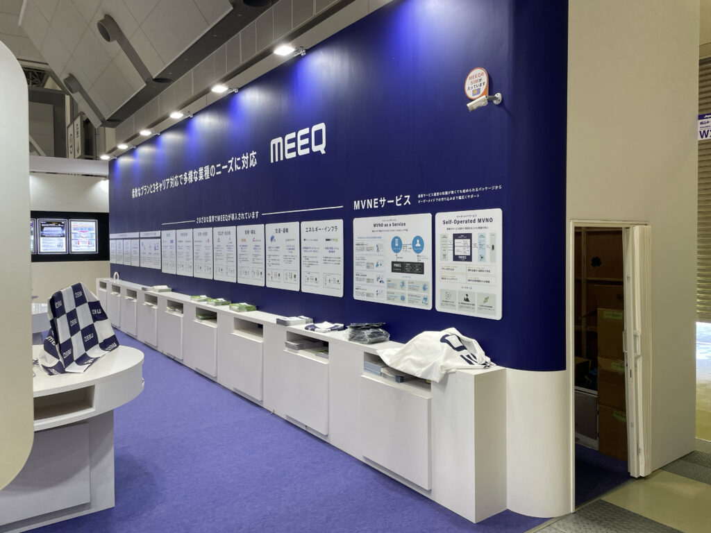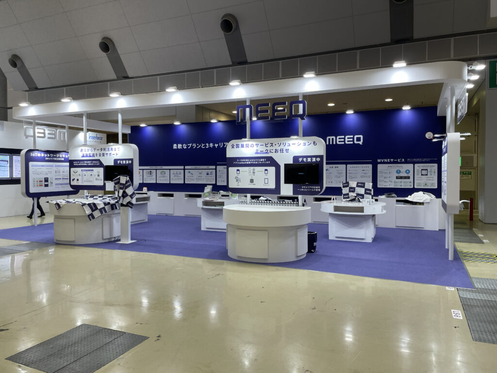昨年より企業名の認知度向上を図るため、基本デザインを統一し、ブースの印象=「MEEQ」を意識づけることを計画しました。また、造作の細かい部分で曲線の造作を用いることでブースに柔らかみを創出し、来場者に企業イメージを「柔らかい=優しいイメージ」と認識してもらえるように考えました。