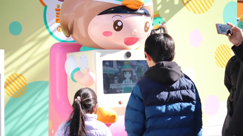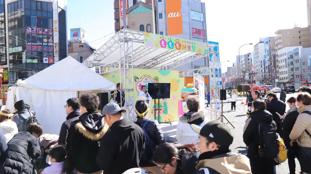 商店街の新キャラクター「もももちゃん」のお披露目イベント。併せて「メタバース商店街」では、ゲームの謎を解くと秘密の道が現れる仕掛けを導入し、未来の商店街を先取りした、ワクワクする体験をお届けしました。